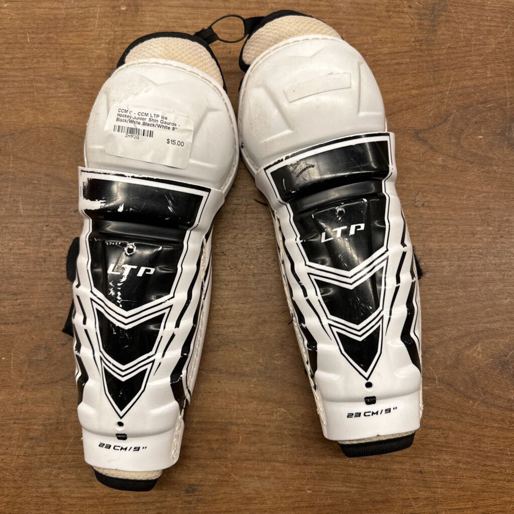 9" - CCM LTP Ice Hockey Junior Shin Gaurds - Black/White