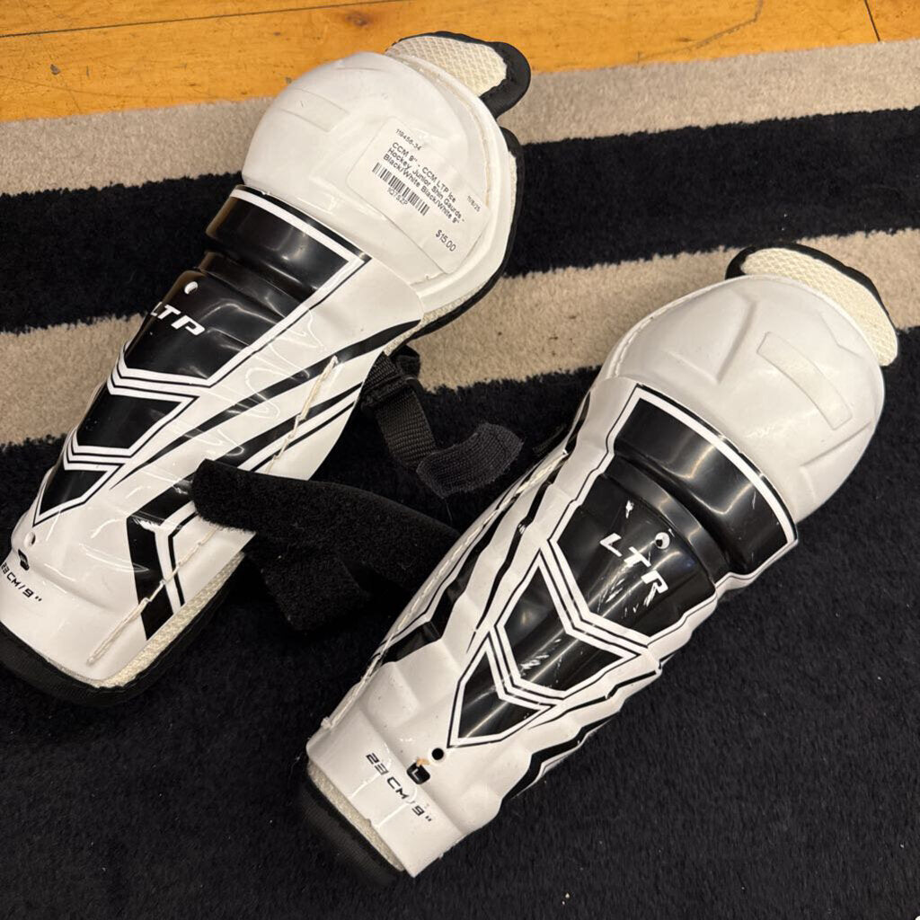 9" - CCM LTP Ice Hockey Junior Shin Gaurds - Black/White