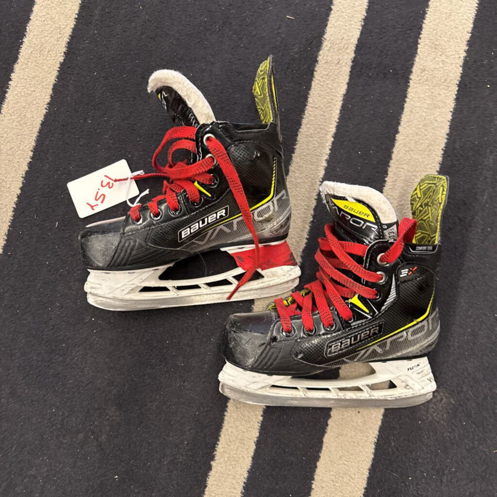 13.5Y - Bauer Vapor 3X w/ Red Laces Youth Ice Hockey Skates- Black/Yellow