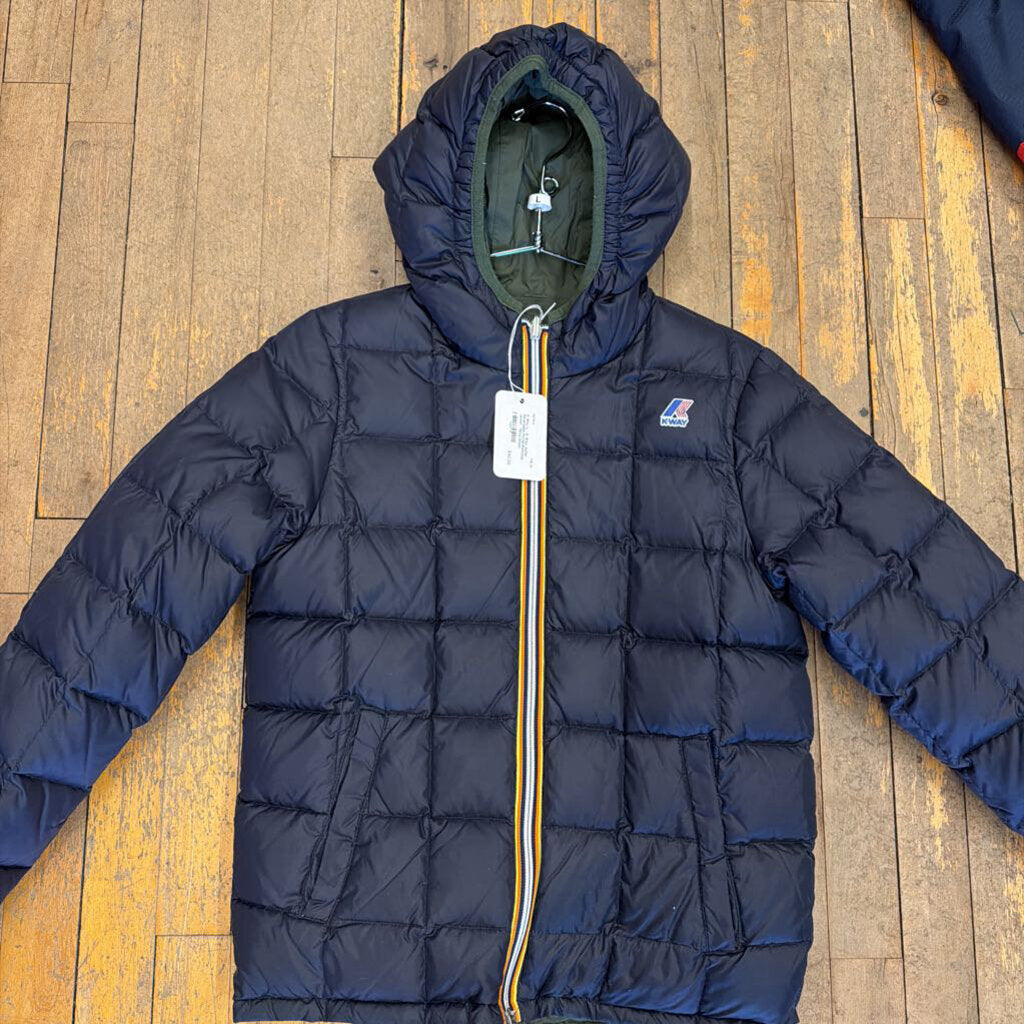 L - K-Way Junior Reversable Puffer/Raincoat Jacket - Navy/Green