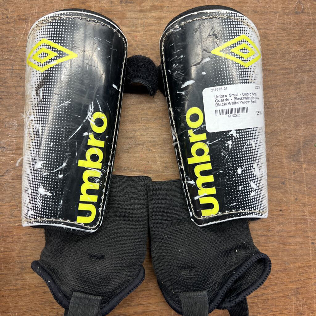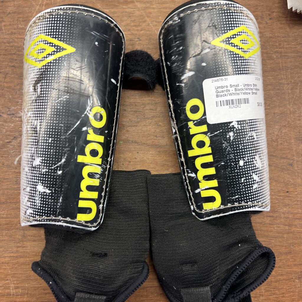 Small - Umbro Shin Guards - Black/White/Yellow