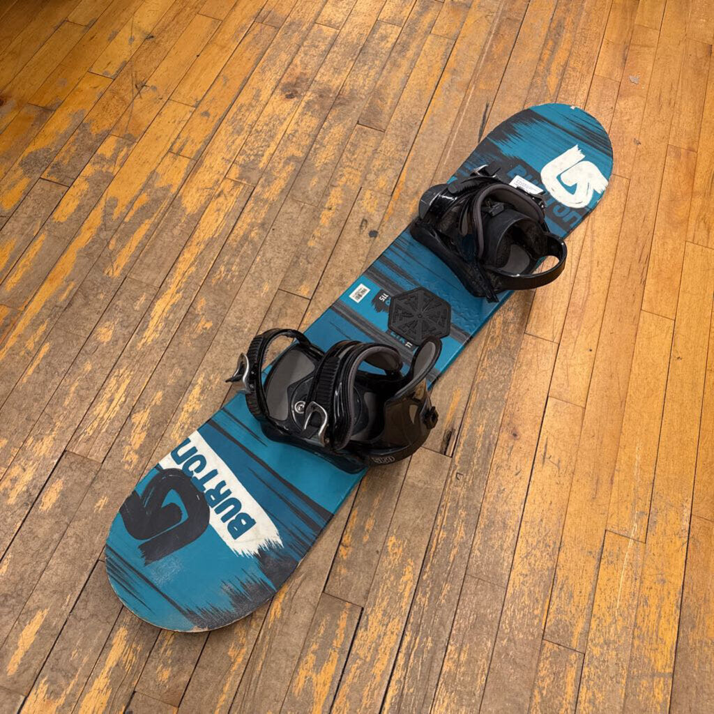 130 - Burton Custom Smalls Snow Board w/ Bindings - Black/Blue
