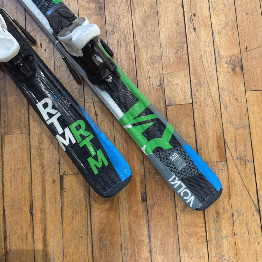 120cm - Volkl RTM 68 Skis w/ Marker 4.5 Bindings - Black/Blue/Green