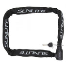 LOCK SUNLT CHAIN EBIKE KEY 8x51in BK E-Bike Key Chain Lock 888571116999 CHAIN LOCKS KEY 8mm linked chain with integrated locking head with disc cylinder Nylon webbing cover prevents marring of frames or finishes Designed for use in medium risk enviroments and short term storage 8mm 4`/130cm Key Blk BLACK