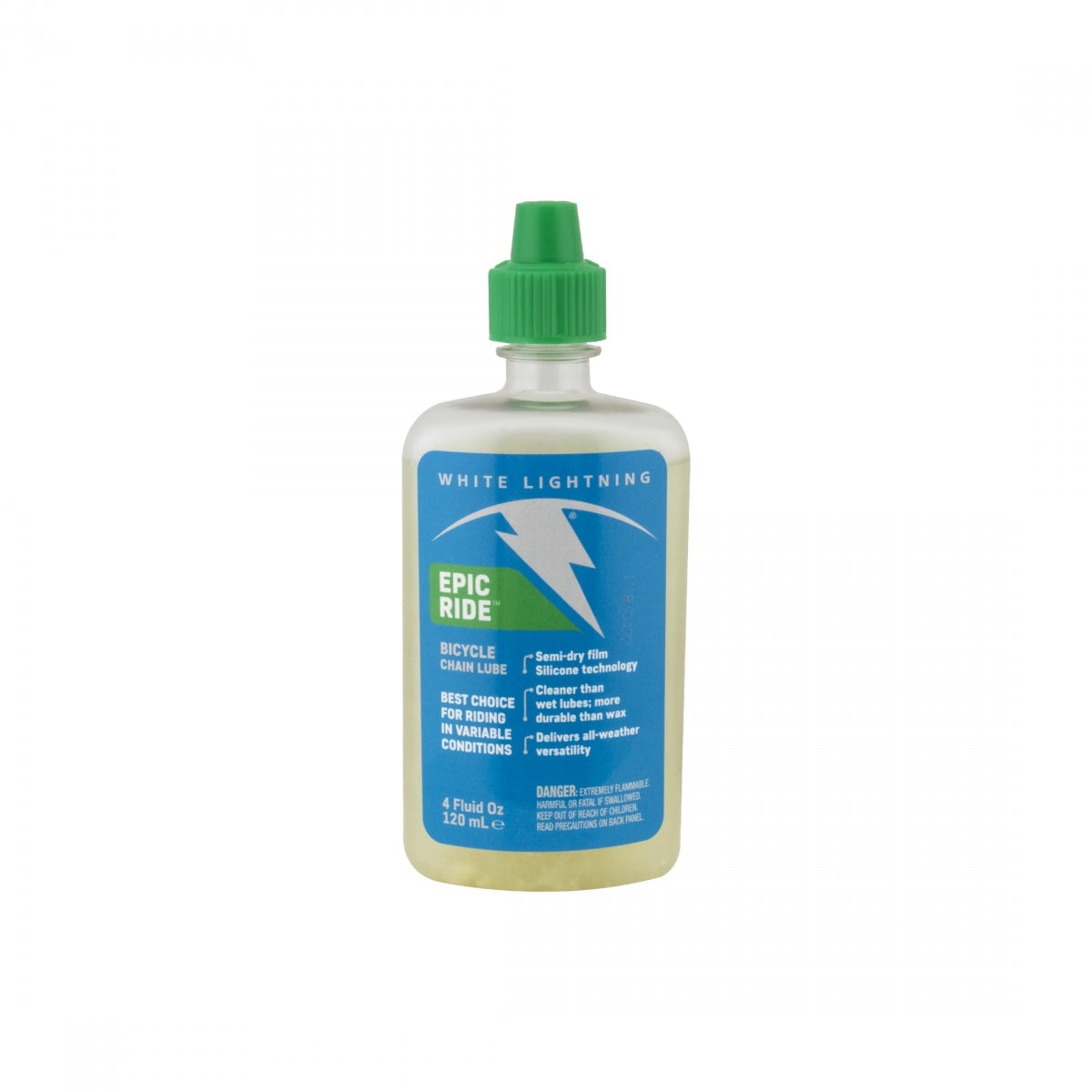 LUBE W-L EPIC RIDE SYNTHETIC 4oz Epic Ride White Lightning 610990001002 LUBRICANT Extreme lubricant for extreme conditions Out performs the best oils in mud, dust, rain, long distances etc. Much cleaner than `oil lubes` Long lasting in wet or dry conditions Maximum rust protection 4 oz Squeeze Bottle Synthetic