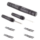 PATCH KIT KOM TUBELESS TIRE REPAIR PLUG KIT ALY BK 10/cs Tubeless Tire Repair Tool 687925220715 TUBELESS Tubeless tire repair plug kit with reamer and plug fork in a small convenient design Includes 8 - 1.5mm tire plugs for use in road or MTB tubeless tires, for large holes 2 can be twisted together if necessary Easily fits in a pocket or small seat bag Black Black BLACK
