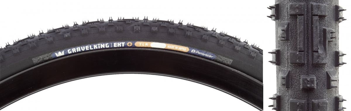 TIRE PAN GRAVELKING EXT+ 700x45 FOLD TBLS BK/BK (O) GravelKing Extreme+ 4931253032059 CLINCHER 700C Aggressive tread pattern featuring long vertical blocks in the center paired with ramped shoulder and corner lugs that provide fast rolling characteristics while offering maximum grip Part of the newly updated GravelKing line, the latest model year sees improved rolling resistance, TuffTex belting, and redesigned bead for improved retention Specially designed tread tailored to work best in sloppy mud, loose rock, gravel and similar conditions Plus model features TuffTex + bead to bead puncture protection resulting in a super tough casing Tubeless 700x45 622 TBLS - Fold Belted Bk/Blk 50 120 No Knobby 700x45, Black BLACK