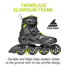 TWINBLADE ALUMINUM FRAME - Durable and helps keep skaters closer to the ground with its low-profile design for enhanced balance and stability. This provides a balance of control and speed.