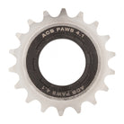 FW SINGLE ACS PAWS 4.1 18T 3/32 NICKEL Paws 4.1 Freewheel 816411002423 SINGLE SPEED Cold forged for high-torque strength 30 steps / 12º engagement Nickel plated sprocket ring, fits 1/8` and 3/32` chains Removable with stand 4-prong tool 18T x 3/32` Single 1.37x24TPI Nickel 18T x 3/32` SILVER