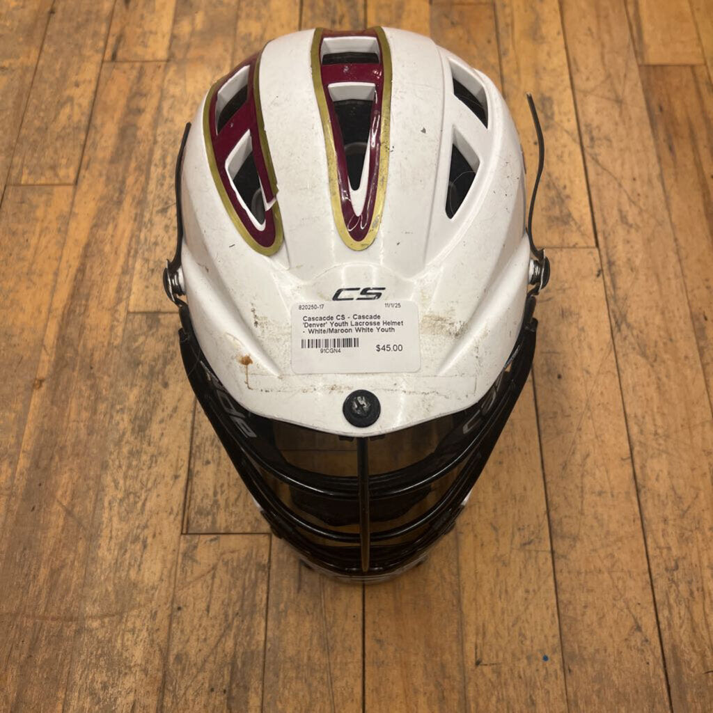 CS - Cascade 'Denver' Youth Lacrosse Helmet - White/Maroon